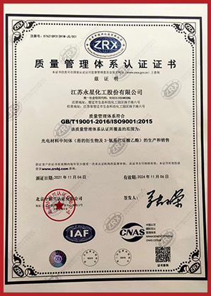 江蘇永星化工股份有限公司成立于2010年,位于江蘇省宿遷市宿豫區(qū)生態(tài)化工科技產(chǎn)業(yè)園揚子路6號,注冊資本3215.463萬元,占地105畝,分為南北兩個廠區(qū)。